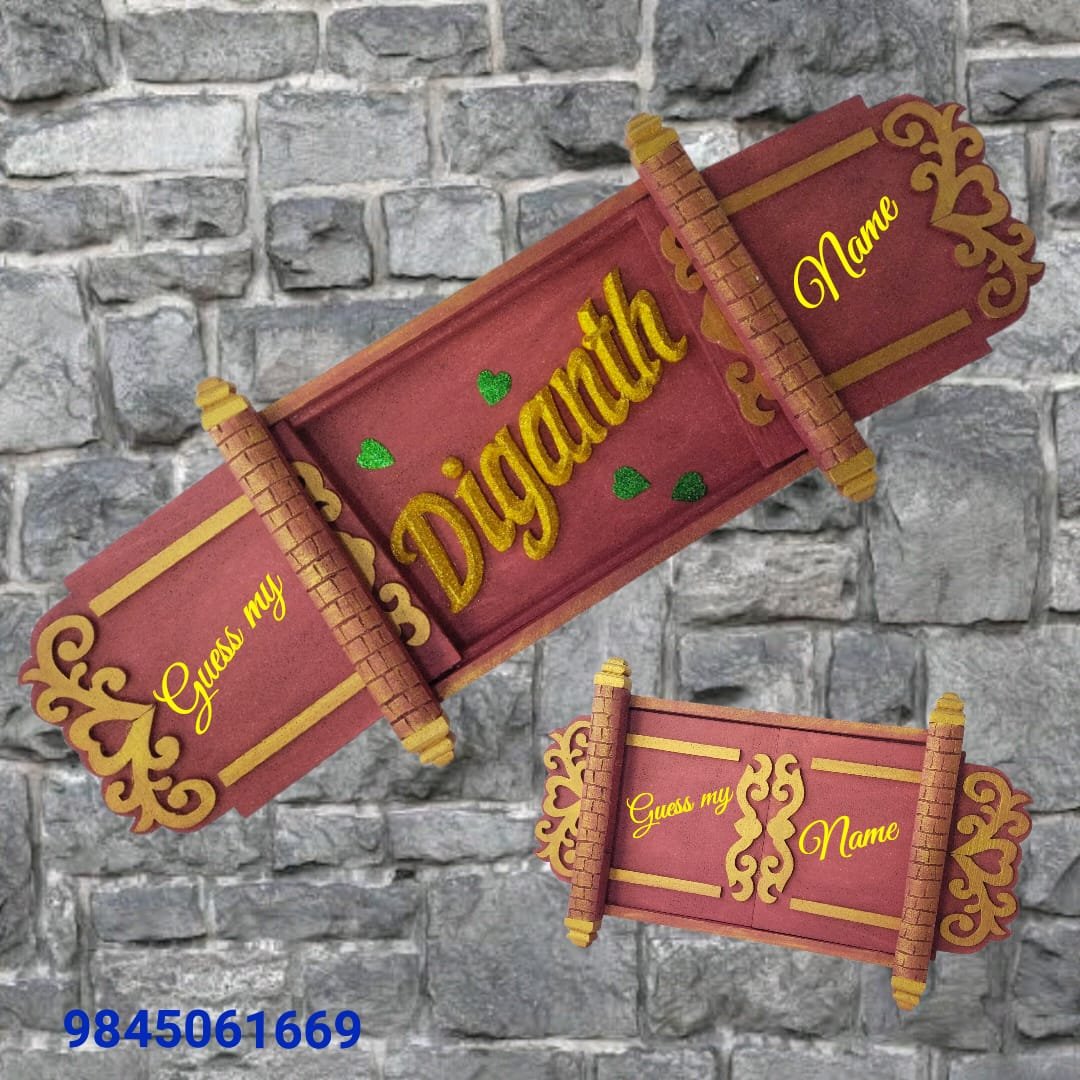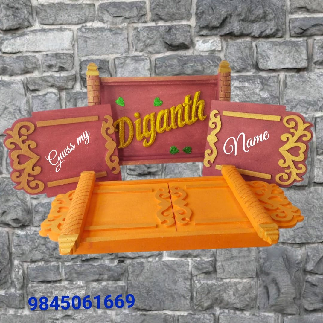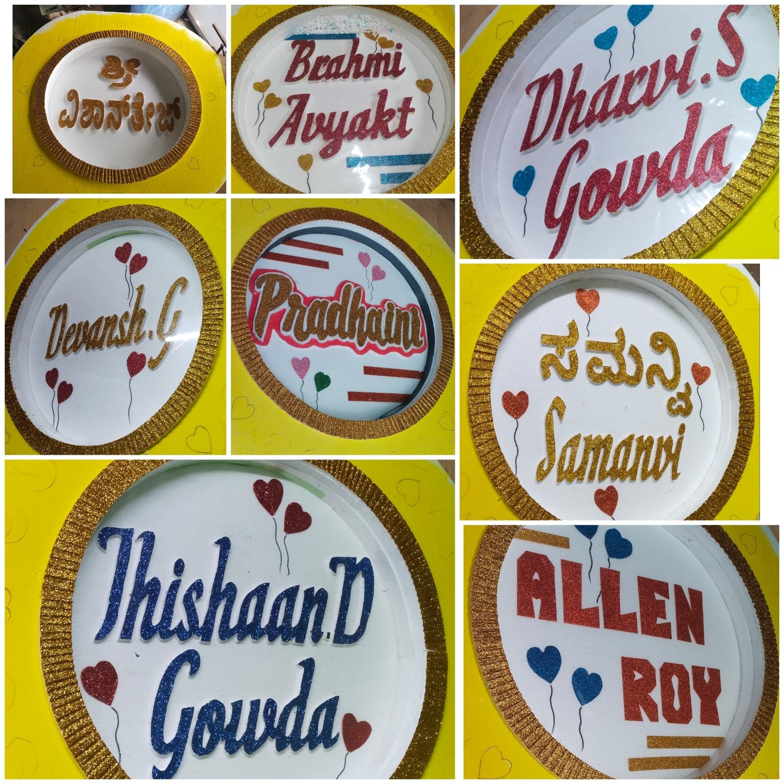 We are the undisputed leaders in Naming ceremony boards in Bangalore. We can make you feel proud of our products for your Naming Board. We craft stunning naming plates and custom designs for every occasion in Bangalore. Tailored to perfection, our creations add a unique touch to your events!With a commitment to excellence and attention to detail, we combine cutting-edge technology, premium materials, and skilled craftsmanship to produce boards that stand out. From sleek corporate signage to creative custom designs, we bring your vision to life.